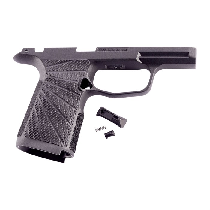Wilson Combat has reengineered the SIG-SAUER P365/P365 XL grip frame to optimize its practical shooting and concealed carry potential. These all-new molded polymer grip modules will enhance your grip and improve recoil control. The significant improvements in shape, texture, and overall ergonomics will give your P365 the superb feel of an expertly hand sculpted custom gun with a simple grip change. These six new models cover standard and XL P365 frames, with or without a manual safety in black and tan color. Wilson Combat’s fresh look at the P365 grip module incorporates the suggestions of tactical trainers, champion shooters, and firearms experts into the final product that has a look that is unmistakably “Wilson”. It is the most practical, comfortable, and stylish P365 grip available and the ideal choice for concealed carry and defensive handgun use. These are non-serialized, newly manufactured grip modules and are not serial numbered firearms. The Wilson Combat SIG-SAUER P365 Polymer Grip Module features: Upgraded, high-cut 1911-style beavertail grip tang for smooth draws Modified backstrap shape for more natural pointing and enhanced grip and recoil control Undercut front-strap and reshaped, radiused trigger guard for the highest grip possible Improved grip traction and increased grip pattern coverage with Wilson Combat’s exclusive Starburst grip pattern on the sides and aggressive texturing on the front and backstrap Internal Slots for Rod-style Tungsten Weights (Sold separately) Factory SIG-SAUER magazine release, spring, and lock included Compatible with all standard holsters 1.4 oz 6 1/8" long 3 1/8" tall 2" grip (front to back) 1 1/8" grip (side to side) Light Compatability: Streamlight - TLR-6 Tactical Gun Light Streamlight - TLR-7 Sub Ultra-Compact Tactical Gun Light Crimson Trace LTG 772 Lightguard Crimson Trace LTG 422 Sig Sauer Foxtrot365 Surefire XSC Micro-Compact Handgun Light Any light compatible with Sig Factory 365 Modules