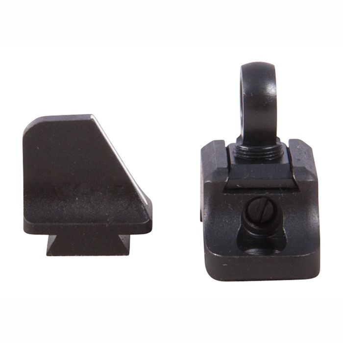 Easy-to-see post front and ghost-ring rear get you on target fast for brush hunting and action shooting. All steel construction, front/rear sets provide the correct front sight for each model, eliminating the guess work of choosing sights. Easy-to-install, fully machined to fit existing rear scope base and front sight holes/dovetails. Windage and elevation adjustable with dual set screws. Modified post front sight with vertical white line insert provides excellent target contrast, is quick to pick up in all light conditions. Includes .191" and .230" I.D. apertures.