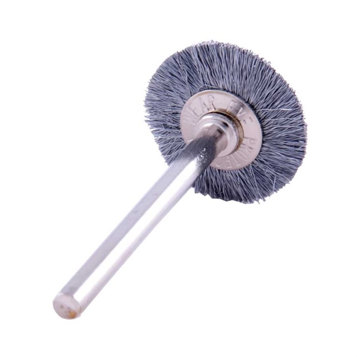 - Włóż trzonek 1/8" (3,2 mm) szczotki drucianej do zacisku narzędzia rotacyjnego.