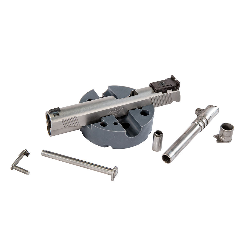 - Upewnij się, że broń jest rozładowana przed umieszczeniem jej na bloku.