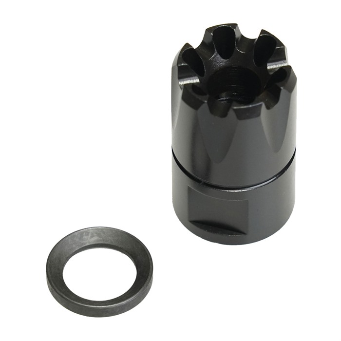 - Przykręć CMMG ZEROED 9mm Linear Comp do gwintu lufy (1/228) ręcznie, aż będzie pewnie osadzony.